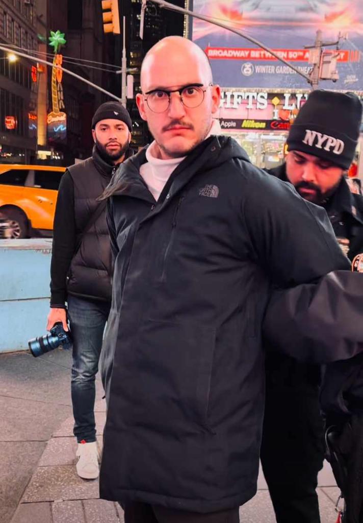 NYC - man is arrested after refusing to stop destroying posters of kidnapped Israelis. After he finally does, he spits in the direction of the officers. NYPD then arrests him. The man has been identified (photo in thread) as Instagram user 'reliable accountant'. The video was recorded by 10/7 massacre survivors Daniel and Neria Sharabi who are are visiting the U.S. trying to raise awareness about 10/7. Their best friend is still being held hostage. The Sharabi brothers heroism was detailed here: https://timesofisrael.com/brothers-saved-dozens-at-nova-fighting-terrorists-with-commanders-phoned-in-advice/amp/