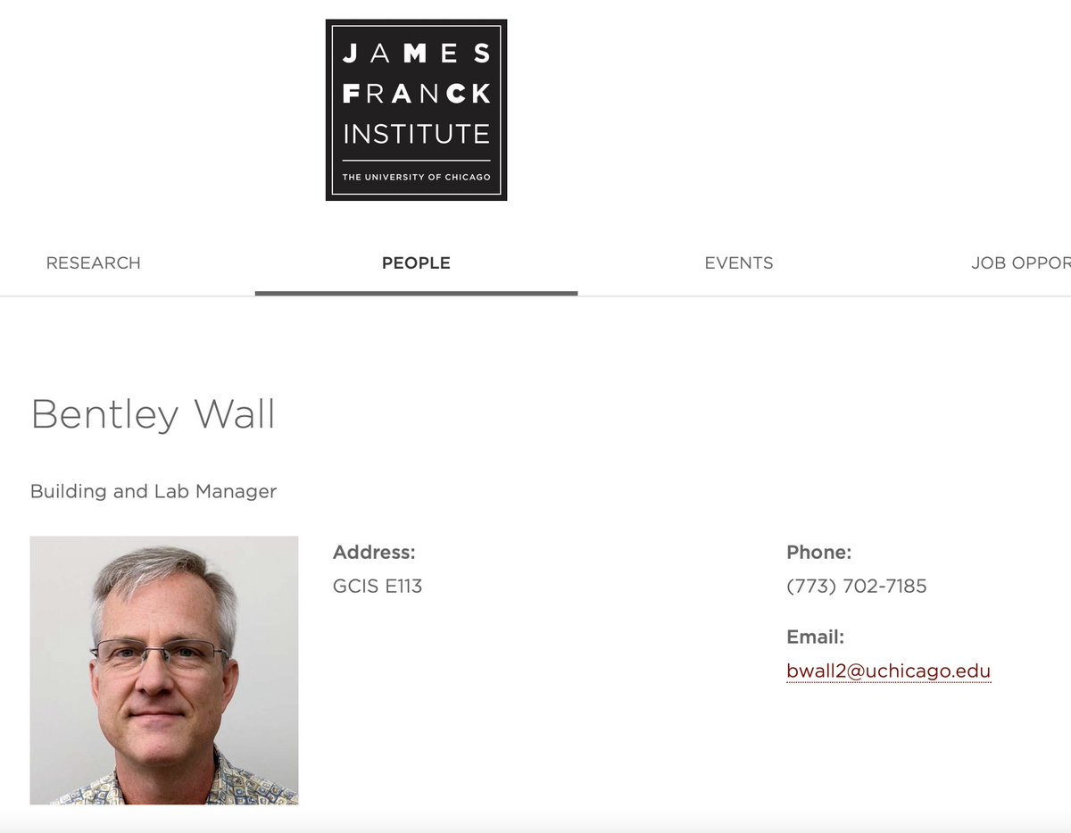 According to a University of Chicago directory, Bentley Wells is a building and lab manager at the Gordon Center for Integrative Science at the James Franck Institute. https://t.co/pYU10VtUN0