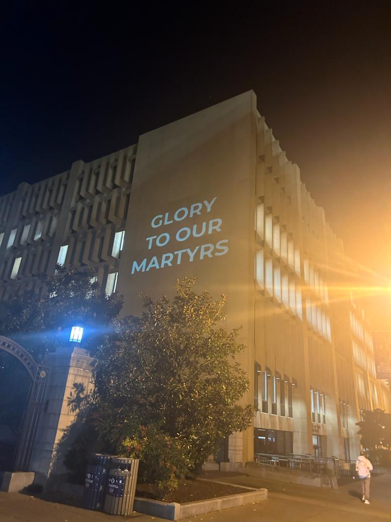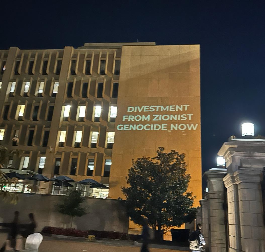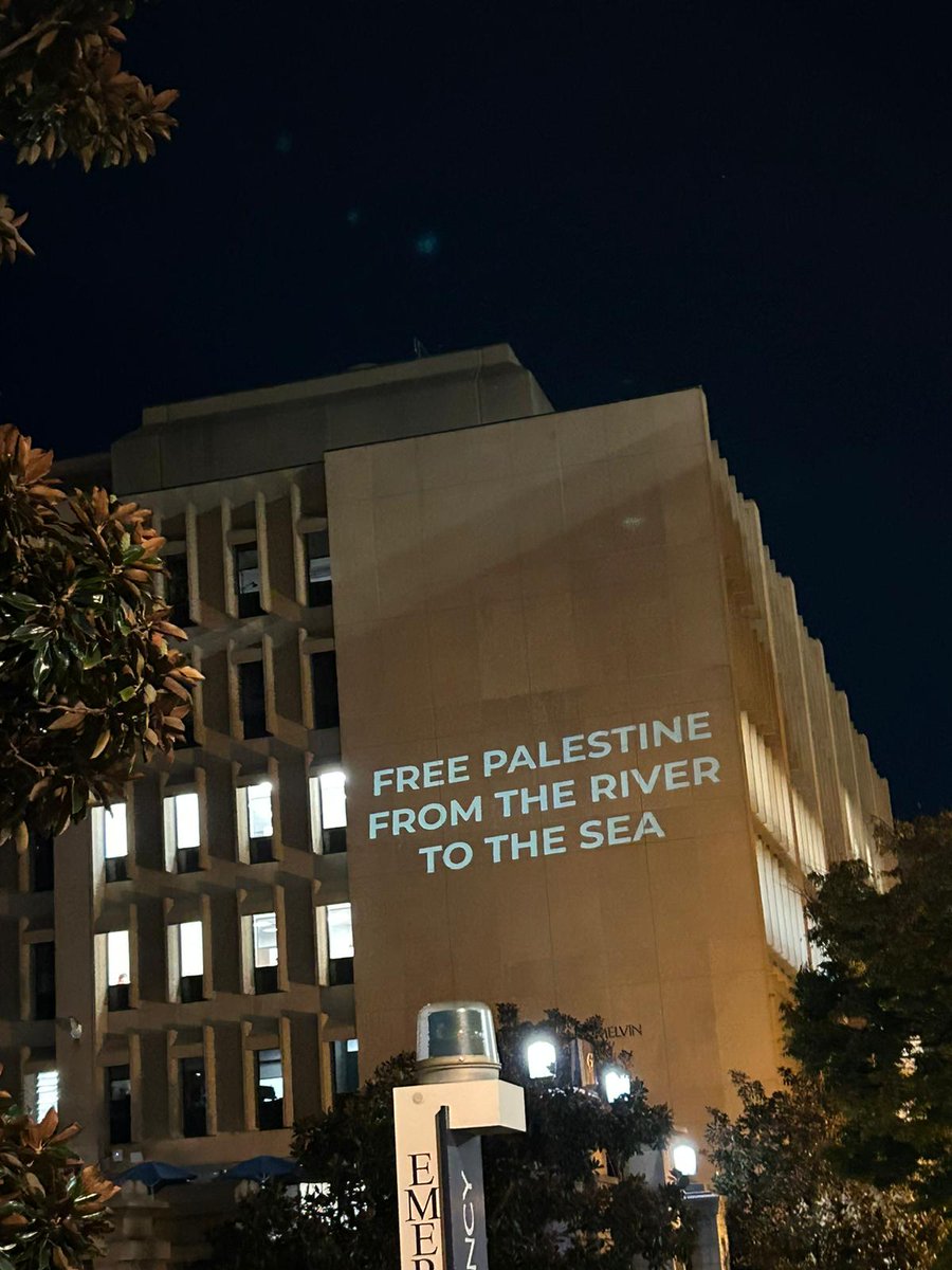 George Washington University - students are projecting horrifying messages onto a school library building glorifying Hamas terrorists that beheaded babies, raped teenage girls, and murdered 1400+ people. We call on President @PresidentofGW to immediately expel those involved. Do you have footage of those responsible? DM us!
