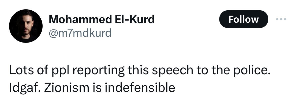 Note the subtitles changed his pro violence stance; however ElKurd is fully aware and proud of what he stated, posting this shortly after his speech @metpoliceuk