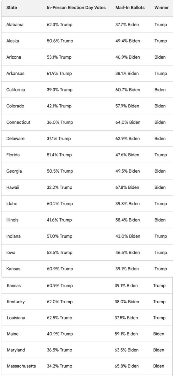 Did you know that DJT won the “in person vote” in ALL 50 states in 2020? Biden won the “mail-in ballot” vote in every state. 🤔 From 100%Fedup👇 https://t.co/nTFIJvO7bE
