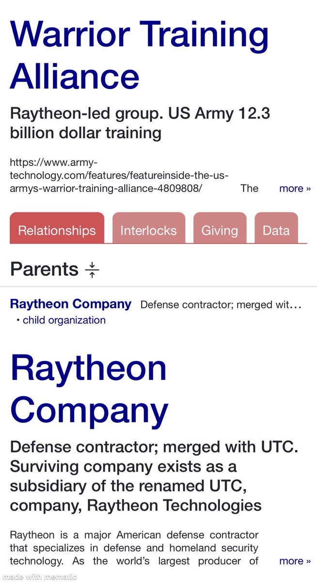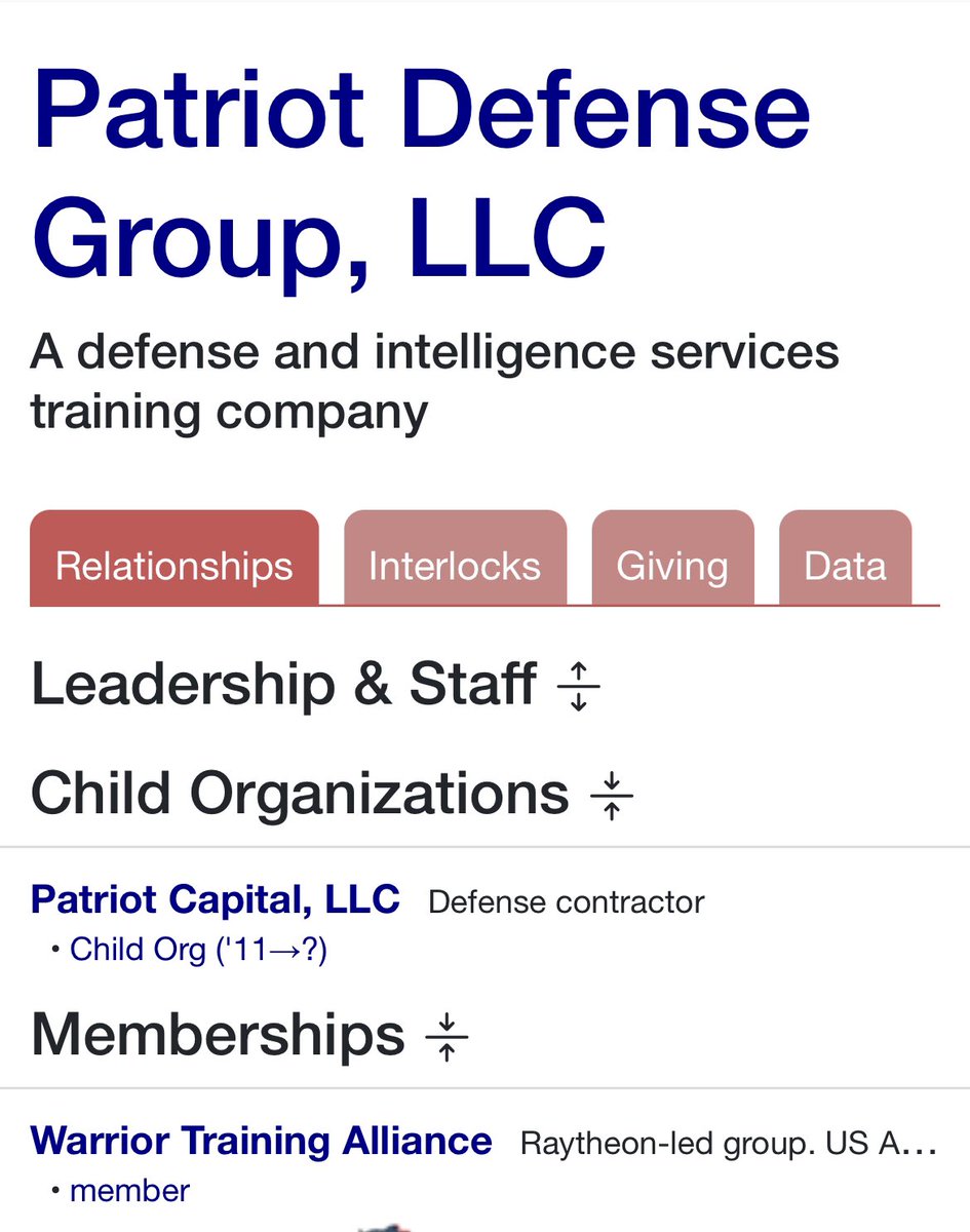We also have Booz Hamilton being connected to the Raytheon led group Warrior Training Alliance that Flynn is also connected to.