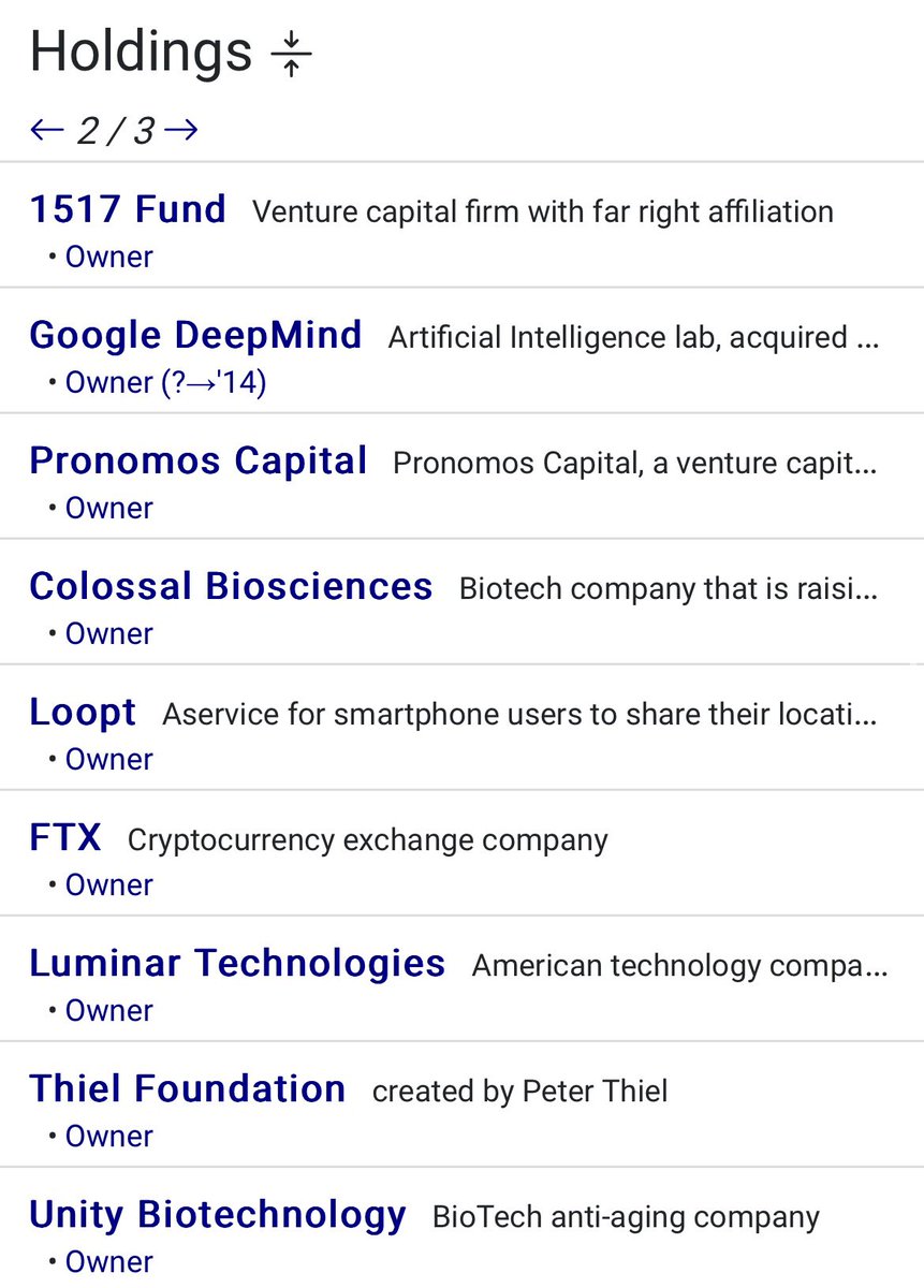 A thread 🧵 taking a deeper dive into @rumblevideo investor, Arabella Advisors donor, FBI informant, FTX shareholder Peter Thiel. Who is Peter Thiel, part owner of @rumblevideo with @dbongino and what connections has he had? Be sure to drop any and all information about these connections no matter how important or unimportant they may seem. Thiel isn’t just connected to New Venture Fund, FBI, and FTX. Be we’ve also been able to link Thiel to Jeffrey Epstein.
