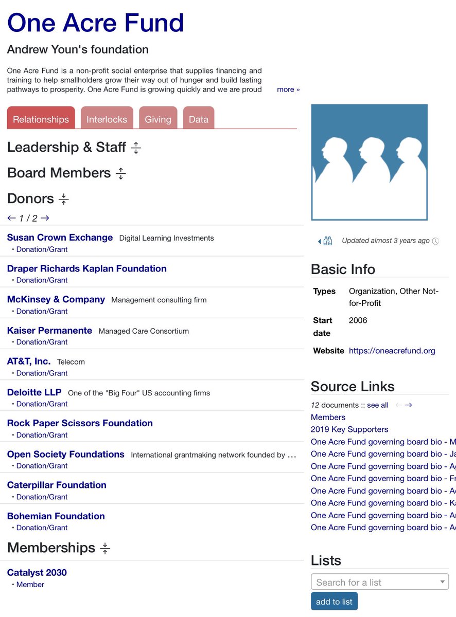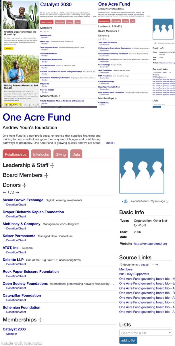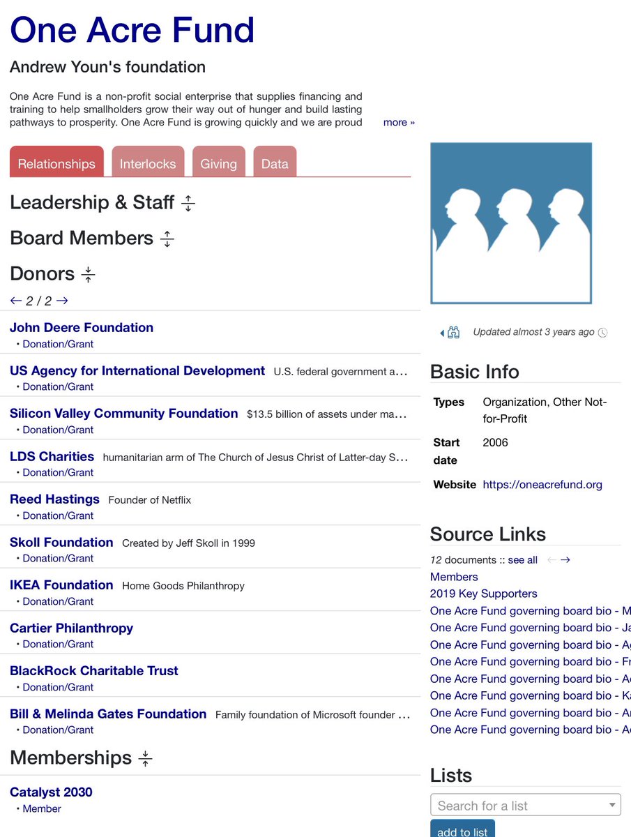 Is @JohnDeere connected to Soros and the Rockefeller bloodline? The John Deere Foundation does work with One Acre Fund. One Acre Fund is Andrew Youn’s Foundation. One Acre Fund’s donors are: • Open Society Foundation • Bohemian Foundation • BlackRock Charitable Trust • Bill & Melinda Gates Foundation Along with the John Deere Foundation to name a few. One Acre Fund is also part of Catalyst 2030. Which is tied to the Rockefellers. https://about.deere.com/en-us/our-company-and-purpose/empowering-communities https://littlesis.org/org/388054-One_Acre_Fund https://littlesis.org/org/414659-Catalyst_2030