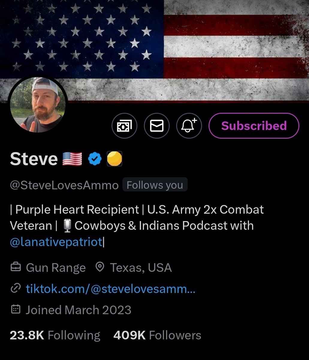 Steve (@SteveLovesAmmo) has a huge heart for people & has been through it all as a Veteran who served in Afghanistan & Iraq. He is a vocal critic of both the military & medical industrial complex. He's someone I personally subscribe to as a thank you for his service. Follow him https://t.co/TjbA6UXDPG