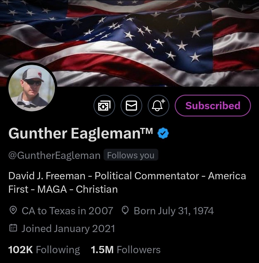 Gunther Eagleman (@GuntherEagleman) is a phenomenon, holding multiple X records: the most tweets per day, and engages with his followers. You’ve probably seen him on your timeline, but make sure you’re following and subscribing to him, too. https://t.co/cCnNbiJ1NN