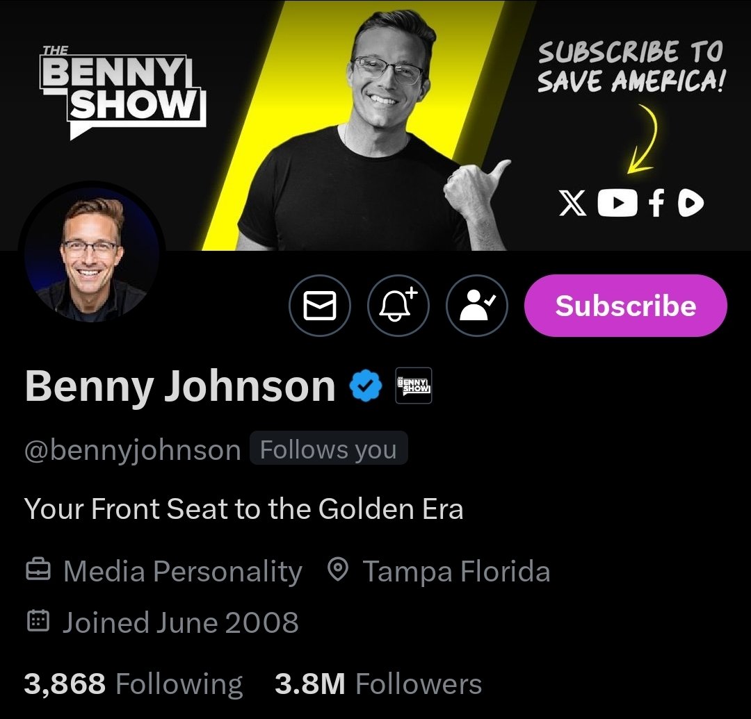 Benny Johnson (@bennyjohnson) the digital gladiator of our times! On X, Benny Johnson is a bit like if a journalist, a political commentator, and a stand-up comedian had a baby, then raised it on a diet of memes and political fervor https://t.co/c0wjrdrWmM