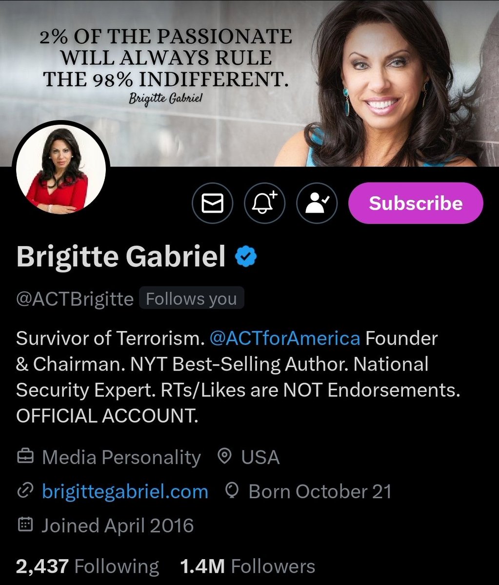 Brigitte Gabriel (@ACTBrigitte) is a symbol of the debate on security and freedom of speech. Her life story, activism, and her very presence on X make her a focal point for discussions on what it means to be a survivor in today's politically charged atmosphere. https://t.co/8l5s2LQvMP