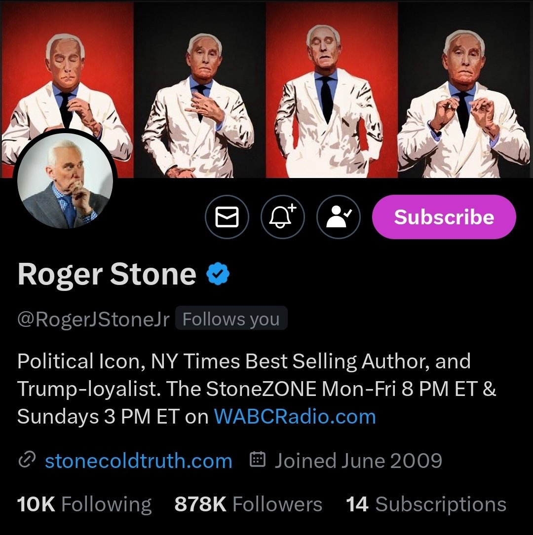 Roger Stone (@RogerJStoneJr) on X isn't just about him; he's a symbol of the broader debate on free speech versus misinformation. His presence stirs the pot, making X not just a place for tweets but a battleground for ideological warfare. https://t.co/sImgBDWIdz