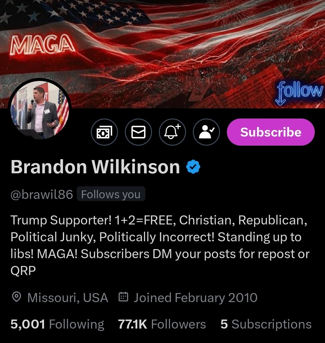 Brandon Wilkinson (@brawil86) has been actively involved in political discourse and community engagement. He holds strong conservative views, often commenting on the importance of constitutional rights like the First Amendment, and supports President Trump. Go follow him! https://t.co/GZtDTouJHq