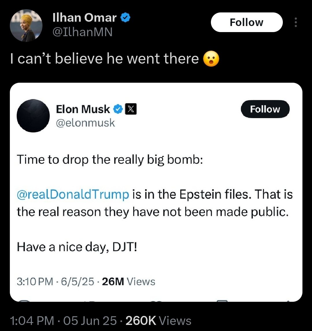 Musk responds on X, claiming Trump wouldn’t have won without his support and accusing him of lying about the bill’s transparency. He went on to say Trump appears in Jeffrey Epstein files, and that's why they hadn't been released. https://t.co/gZJs0Mbeyv