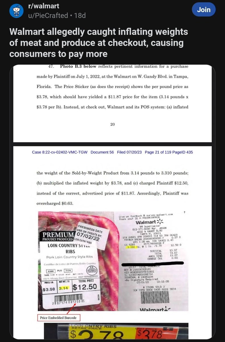 Walmart settles Iawsuit for marking up the weight of meat products. Anyone who shopped there between Oct 2018 and Jan 2024 may be entitled to a payout. https://t.co/rEdDJxsVzw