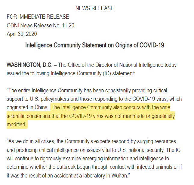 A question for @RichardGrenell - Per your email, who in the White House - "the oval" - requested the IC statement on COVID origins? The April 2020 statement that the IC agrees that "the COVID 19 virus was not manmade or genetically modified" https://t.co/7dAguE1J2D