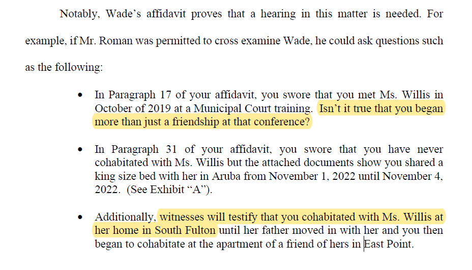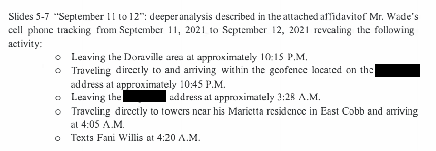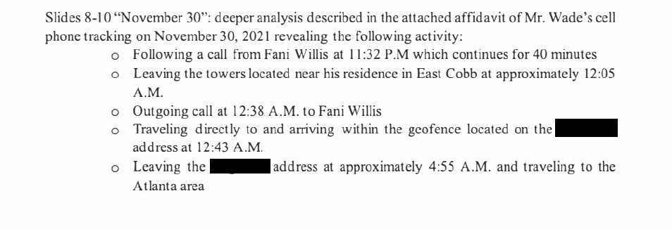 There were multiple "romantic" late nights at Willis's condo in 2021. Each is corroborated by Wade's location and texts/calls between Wade and Willis. The records disprove Willis's testimony. They aren't just disqualifying - they are a threat to Willis's career. https://t.co/2lZHzFuyyw