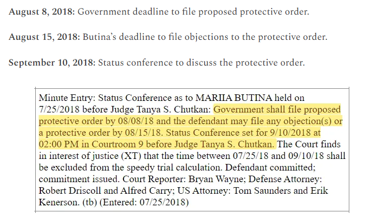 This unfairly quick timeline is inconsistent with how Judge Chutkan has treated other defendants. In the Maria Butina case, Chutkan gave Butina 1 week to respond to a PO and set the hearing a month out. https://t.co/TUShPlFhES