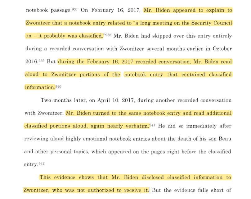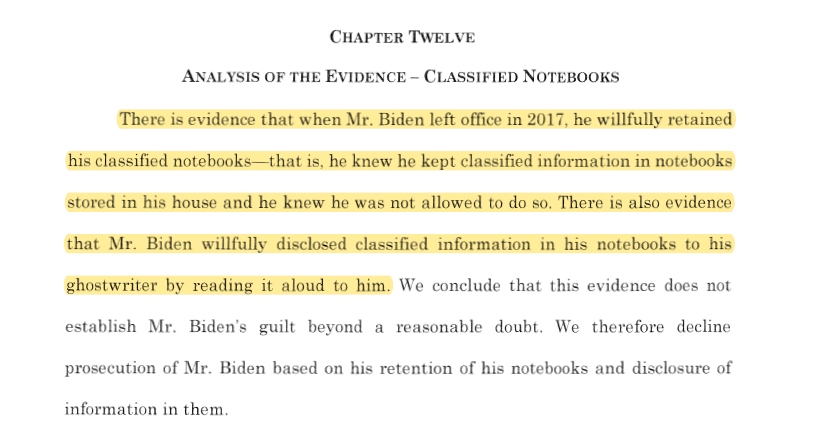 There is also evidence that Biden: - Unlawfully retained classified notebooks post-Vice Presidency. - Disclosed classified info in his notebooks to his ghostwriter. https://t.co/N0bcZNUNnn
