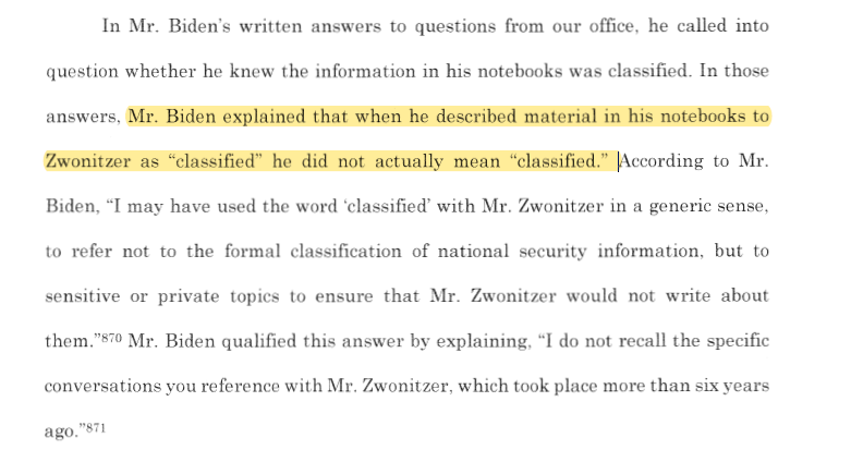 Biden's excuse to the Special Counsel amounts to a criminal false statement: Biden explained that when he described material in his notebooks as "classified" he did not actually mean "classified" The Special Counsel didn't buy it. https://t.co/Pq5BnM52Bo