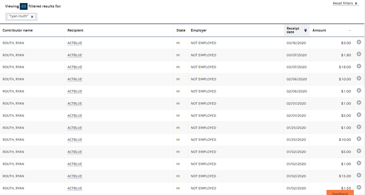 The political donations of would-be assassin Ryan Wesley Routh. All to the Democrats. Something in common with the last shooter. https://t.co/bZzNd9ENOi