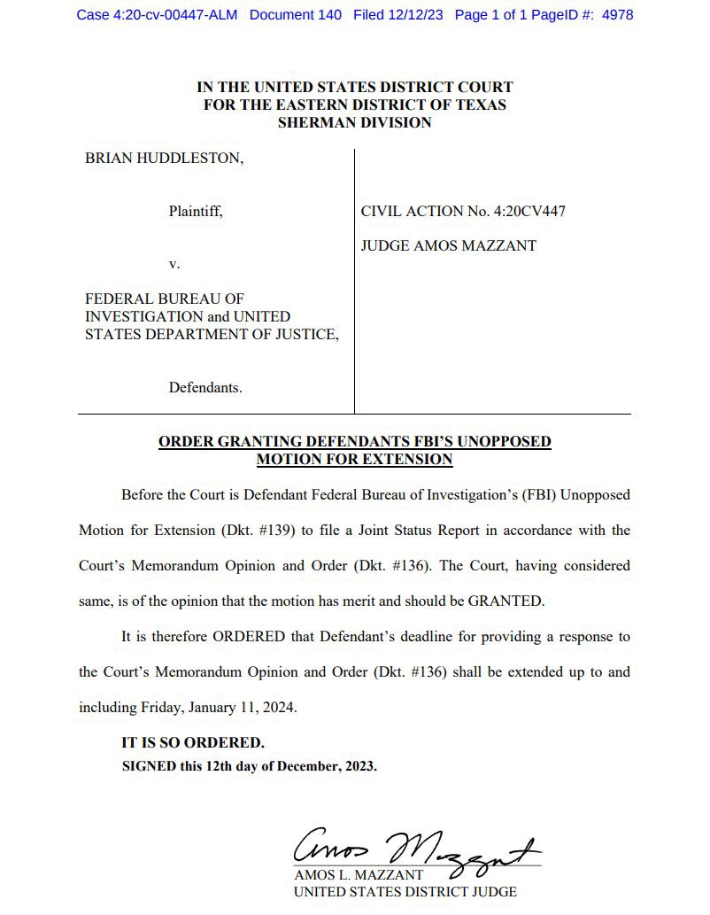 Update on Seth Rich’s Laptop Case: Last month (on Nov 28th) a judge ordered that the FBI recommend a timeline for the disclosure of information on Seth Rich’s personal/work laptops, a DVD, & a tape drive within 14 days. Then, just a few days later the AUSA assigned to this case, Andrea Parker, left the U.S. Attorney's Office. Shortly after that, the case was re-assigned to a new AUSA: James Gillingham. Due to the change of AUSAs the FBI filed a motion for an extension, asking for 30 days and the court accepted. Now the FBI’s new deadline to meet the court order is: January 11, 2024