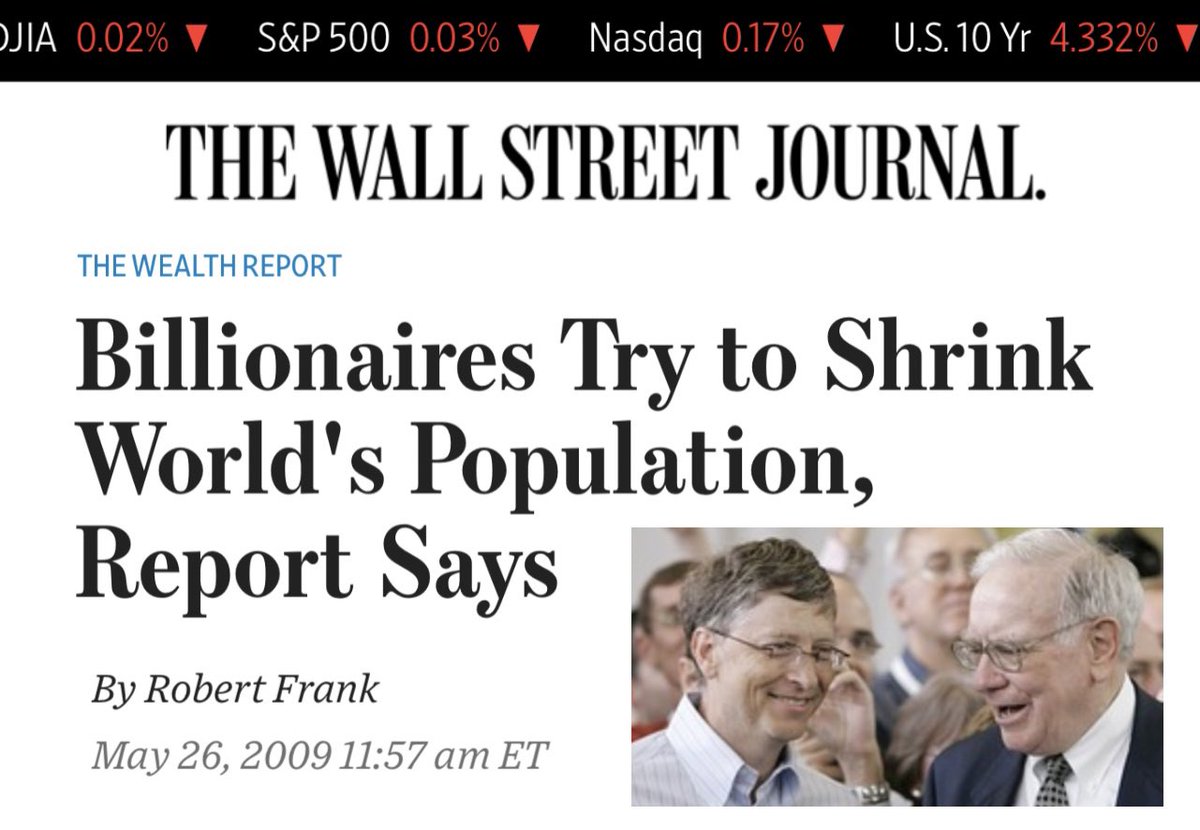 WSJ: The New York meeting of billionaires Bill Gates, Warren Buffett, David Rockefeller… George Soros, Ted Turner, Oprah, Michael Bloomberg and others. The issues discussed in the top-secret meeting included health care, education and—by far the most controversial—slowing the global population growth. “Taking their cue from Gates they agreed that overpopulation was a priority," the Times of London said. https://tinyurl.com/WSJ-BillionairesMtg