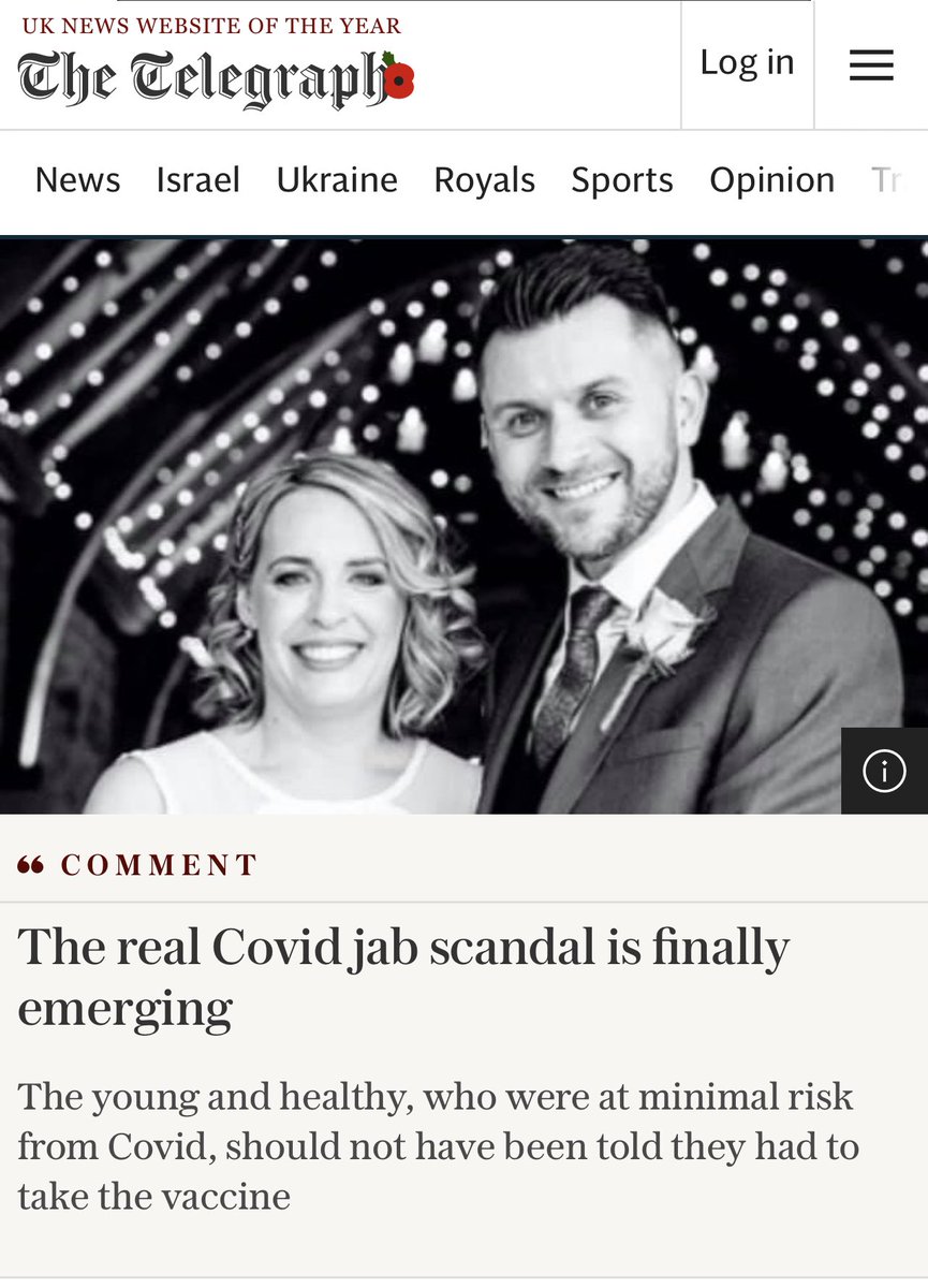 Part III from the Telegraph: She noted that vaccinating healthy people, who are much less likely to have severe outcomes from Covid-19, “could cause them some freak harm”, potentially tipping the scales in terms of the risk-benefit analysis. With a heavy heart I’m going to say what should have been said a long time ago. Unlike those who were actually vulnerable to Covid, Lisa Shaw did not need a Covid vaccine; any minuscule benefit to her was outweighed by the small risk. Neither did I (I’d had the virus in January 2020 as plentiful antibodies later attested and enjoyed good immunity). Millions of healthy people queued up for a jab they didn’t require which protected against serious disease in the elderly and vulnerable, but was not necessary for most of the rest of us. How this country moved from a policy of only vaccinating those who would benefit to running the risk of inflicting “some freak harm” on people like Lisa Shaw may yet turn out to be one of the great scandals of the age. “I put her on a pedestal,” Gareth Eve says of his late wife, “Lisa was only 5ft 2 and I’m 6 foot, but I put her on a pedestal. She was that wonderful. When she died, because of the way that she died after the jab, it was ‘a dirty secret’, you weren’t supposed to talk about. With AstraZeneca, these companies are run by human beings, you would have thought they were run by human beings, Allison, but they don’t want to talk to the people like me...Zachary doesn’t have his mam because the authorities didn’t give us the full picture about the risks.” There’s no shame in being against giving a vaccine to groups who didn’t need it, and which caused people to be dead who should be alive and taking their eight-year-old son to school. Source: https://www.telegraph.co.uk/news/2023/11/09/the-real-covid-jab-scandal-is-finally-emerging/?WT.mc_id=e_DM232393&WT.tsrc=email&etype=Loy_Dig_Acq_Sat_0Dto7D&utmsource=email&utm_medium=Loy_Dig_Acq_Sat_0Dto7D20231111&utm_campaign=DM232393