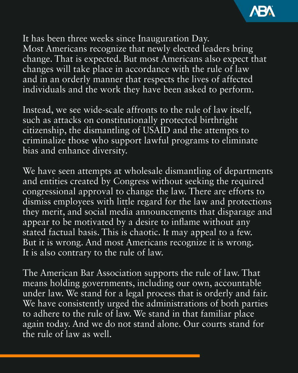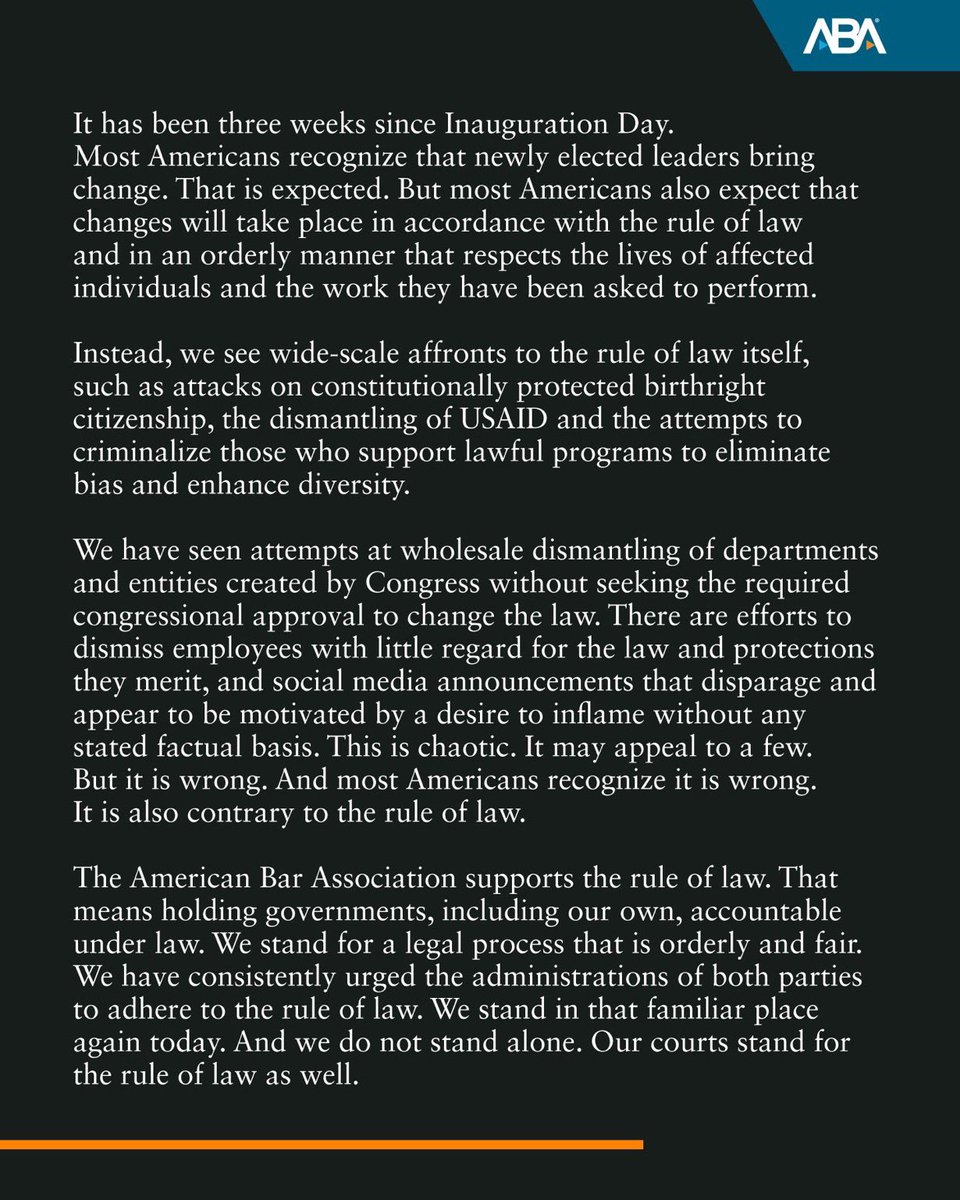 You can’t make this up. Of course the American Bar Association would release a “blistering statement” about @DOGE dismantling their slush fund known as USAID. The ABA has received so many American Tax Payer funded grants from USAID & the State Dept. I can’t even list them all…😂