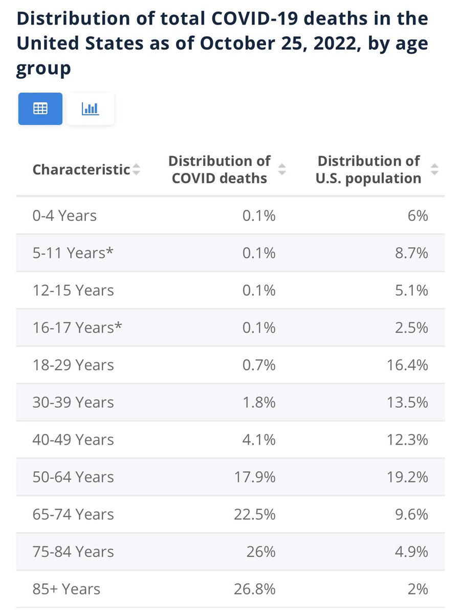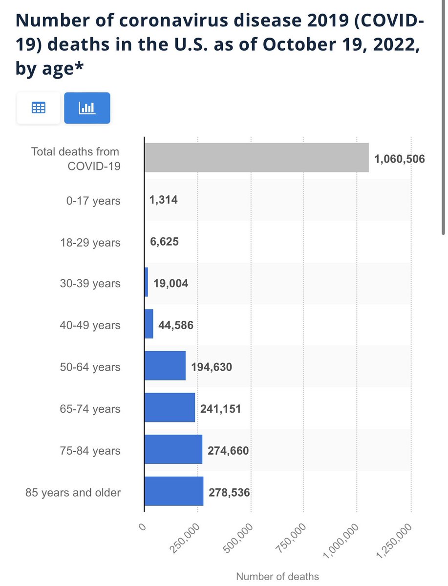 US Covid data on deaths. (Statista) - they are giving vaccines to age groups that are barely affected by Covid. Vaccines that they have *known* are causing health problems, not limited to just heart conditions. Why give kids these shots for a negligible trade off? https://t.co/tLhpMOanxQ