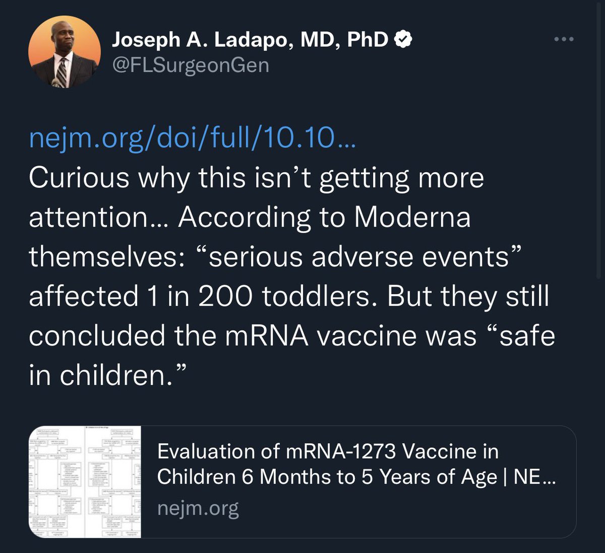 Malone - βOn average, between 1 in 2,000 and 1 in 3,000 children that receive these vaccines will be hospitalized in the short term with vaccine-caused damage,β