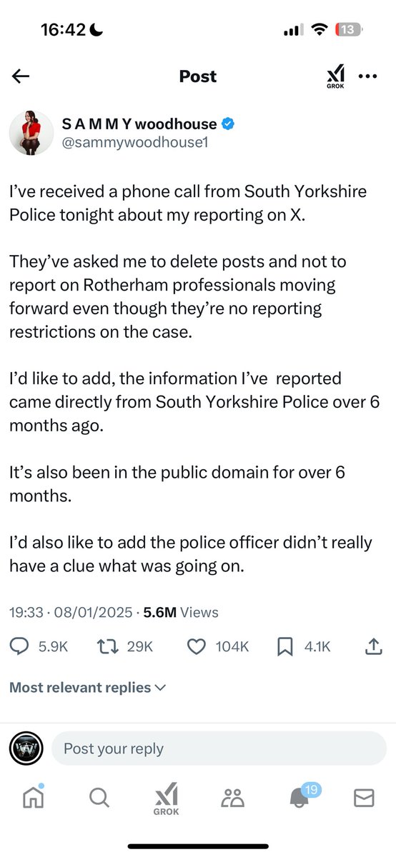 BREAKING 🚨 : hundreds of British citizens, including journalists, are reporting that they’ve been visited by the police over the last few days regarding X posts. They aim to silence anyone who speaks out, and that's just plain tyranny. https://t.co/PhhfTcI5OP