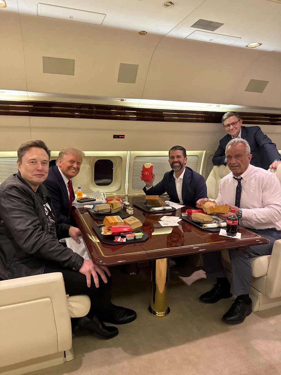 PHOTO: President-elect Trump, Trump Jr., Elon Musk and RFK Jr. having McDonald's on Trump Force One https://t.co/xiOu5VZqMq