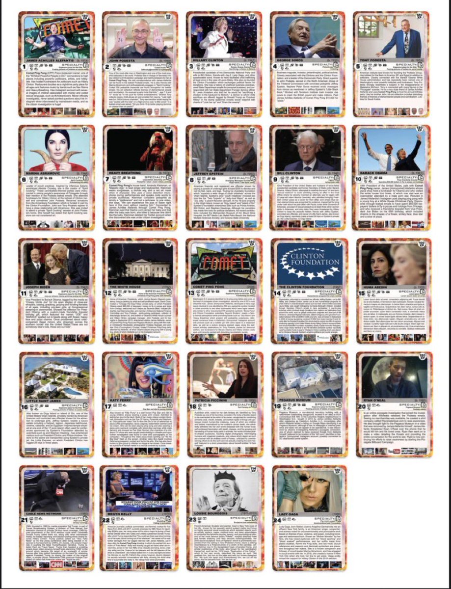7/7 ‼️HERE IS THE COMPLETE #PIZZAGATE 24 DIGITAL CARD COLLECTION‼️ 👉🏼 casually share some or all of these with friends & family 👈🏼 [timing is everything, now or never]. this will help when #EpsteinClientList and Pizzagate are fully disclosed. these are the players, places and players! thanks to @EntheosShines. I miss you, but know you're here. 😎 /end.