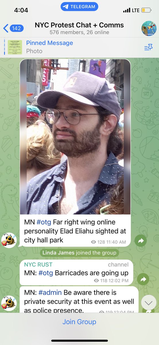 Earlier today leftist “NYC protest chat + comms” telegram channel marks our reporter @elaadeliahu while he was covering this rally. They have a history of threats towards him and other reporters https://t.co/i3fZTfufJM https://t.co/MJNoTB892y https://t.co/q7f62xErXA
