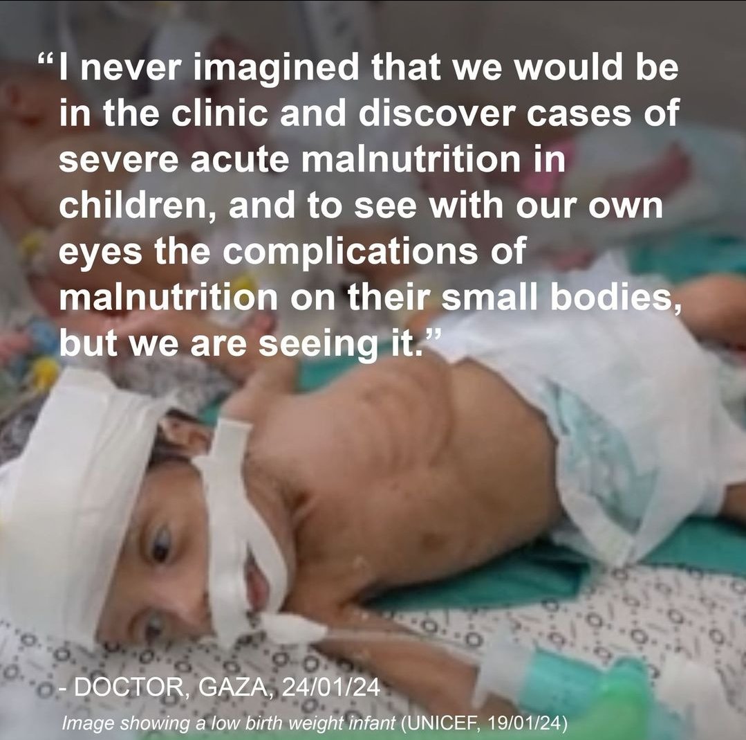 Pictured below is one of the many premature babies born into the world suffering from malnutrition due to the ongoing Israeli aggression and siege imposed on Gaza. https://t.co/uFz85FH33d