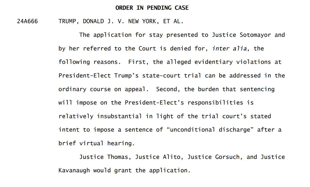 The Supreme Court, by a vote of 5-4, failed the Republic tonight and will allow @RealDonaldTrump and the presidency to be abused tomorrow by Democratic operatives Judge Merchan and Alvin Bragg. Chief Justice Roberts and Justice Amy Comey Barrett joined with their leftist colleagues to allow this unprecedented abuse. The ruling makes no sense...