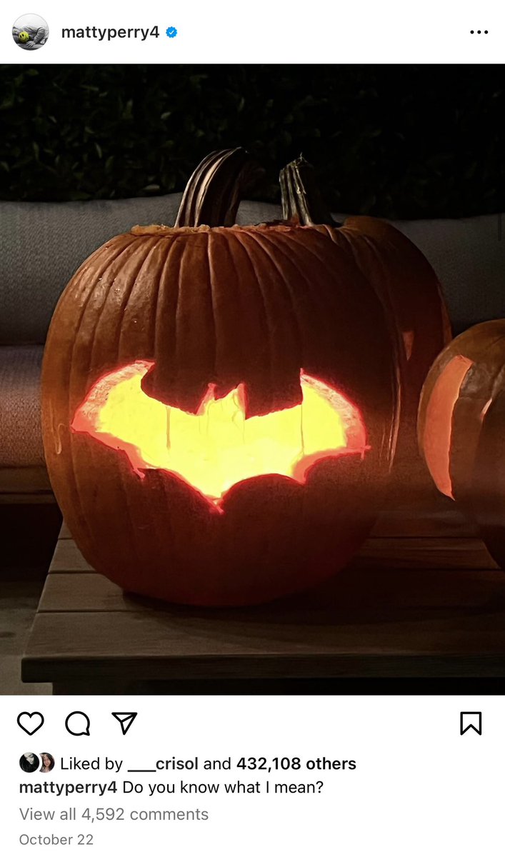 19/ 10/22 He posts a picture of a pumpkin w/ the Batman logo. We already have the WHO, WHAT, HOW & a potential WHY (there’s more to this “WHY” in PART 2) And here’s the WHEN! HALLOWEEN! captioned: “Do u know what I mean?” (He’s wondering if we’ve decoded his codes yet)