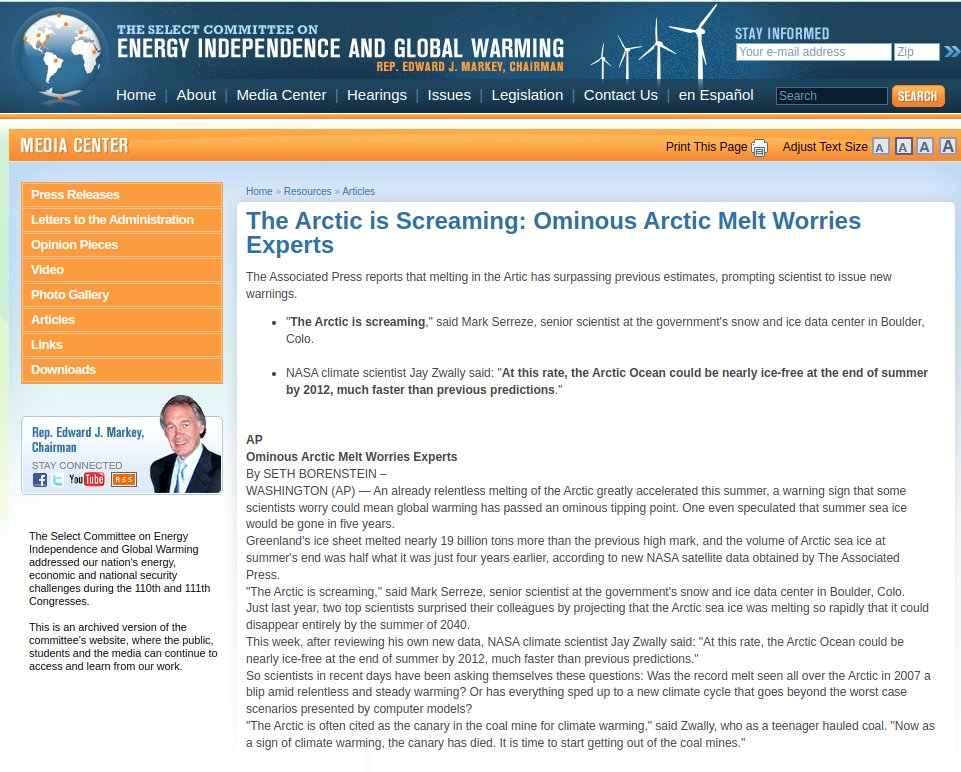 "@NASA climate scientist Jay Zwally said: "At this rate, the Arctic Ocean could be nearly ice-free at the end of summer by 2012, much faster than previous predictions." 🤡🤡🤡🤡🤡 @SenMarkey @borenbears @AP https://www.markey.senate.gov/imo/media/globalwarming/resources/articles_id=0018.html