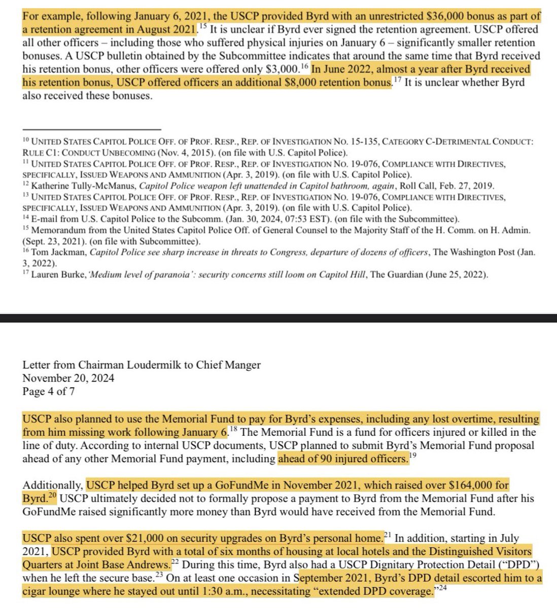 The corrupt, racist cop who fatally shot J6 protestor Ashley Babbitt has a lengthy disciplinary record that includes multiple gun incidents! The issues in officer Michael Byrd's background included a failed shotgun qualification test, a failed FBI background check, a suspension for a lost weapon and referral to prosecutors for firing his gun at a stolen car. Personal Note: but there is so much more! After J6, once Michael Byrd was identified, we began reviewing his movement via GPS, while he was being ‘protected’ by taxpayer funded security detail living at Andrew AFB and partying into the night all while refusing to “telework” per a cushy agreement. GPS demonstrated Byrd was regularly visiting two different drug houses, sometimes 10 times in a week, with his security detail? WTF!? Let this sink in, at the time of the shooting of unarmed Ashley Babbitt, Michael Byrd had failed a background check and should not have been carrying a gun. https://justthenews.com/accountability/hldcop-who-shot-j6-protestor-has-lengthy-disciplinary-record-mishandled-firearms