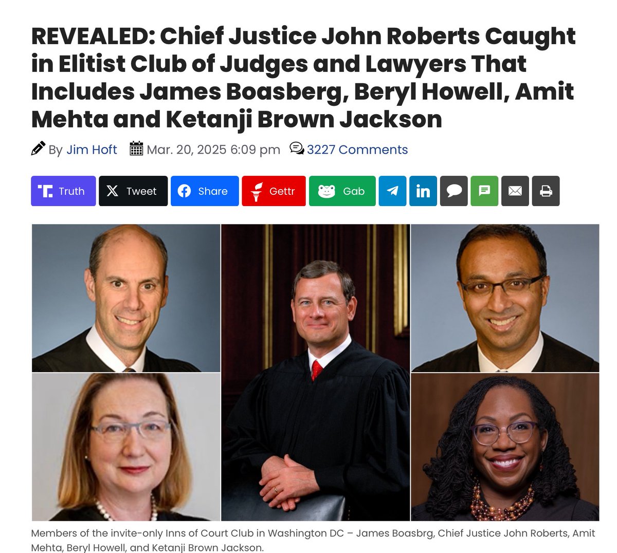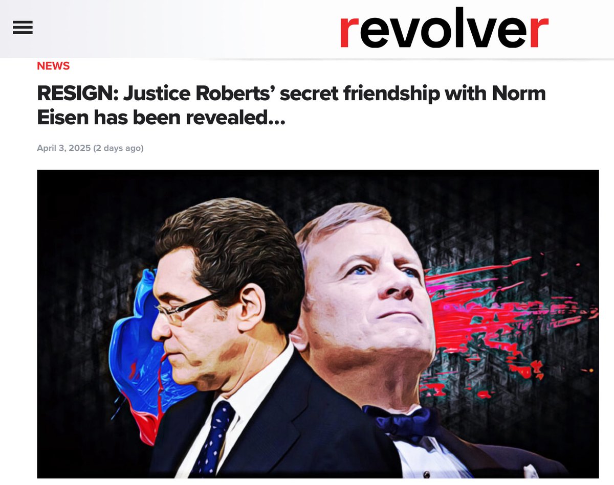 🚨 Chief Justice Roberts’ Secret Friendship with Trump Prosecutor Ally Norm Eisen Exposed 🚨 Roberts didn’t just bump into Eisen at a D.C. cocktail party. No, these two are apparently such “good pals” that Roberts jetted off to the Czech Republic for a week-long sleepover at Eisen’s lavish 150-room palace. It’s straight from the mouth of Norm Eisen himself—the very same man who practically wrote the Deep State’s instruction manual on how to destabilize political opponents via color revolutions, lawfare, and weaponized legal warfare against President Trump. https://revolver.news/2025/04/resign-justice-roberts-secret-friendship-with-norm-eisen-has-been-revealed/ But wait, there’s more (no wonder the 2020 election fraud cases went nowhere): 🚨 REVEALED: Chief Justice John Roberts Caught in Secretive, Invite-Only Club of Elite Judges and Lawyers That Includes James Boasberg, Beryl Howell, Amit Mehta and Ketanji Brown Jackson 🚨 https://www.thegatewaypundit.com/2025/03/revealed-chief-justice-john-roberts-caught-secretive-invite/
