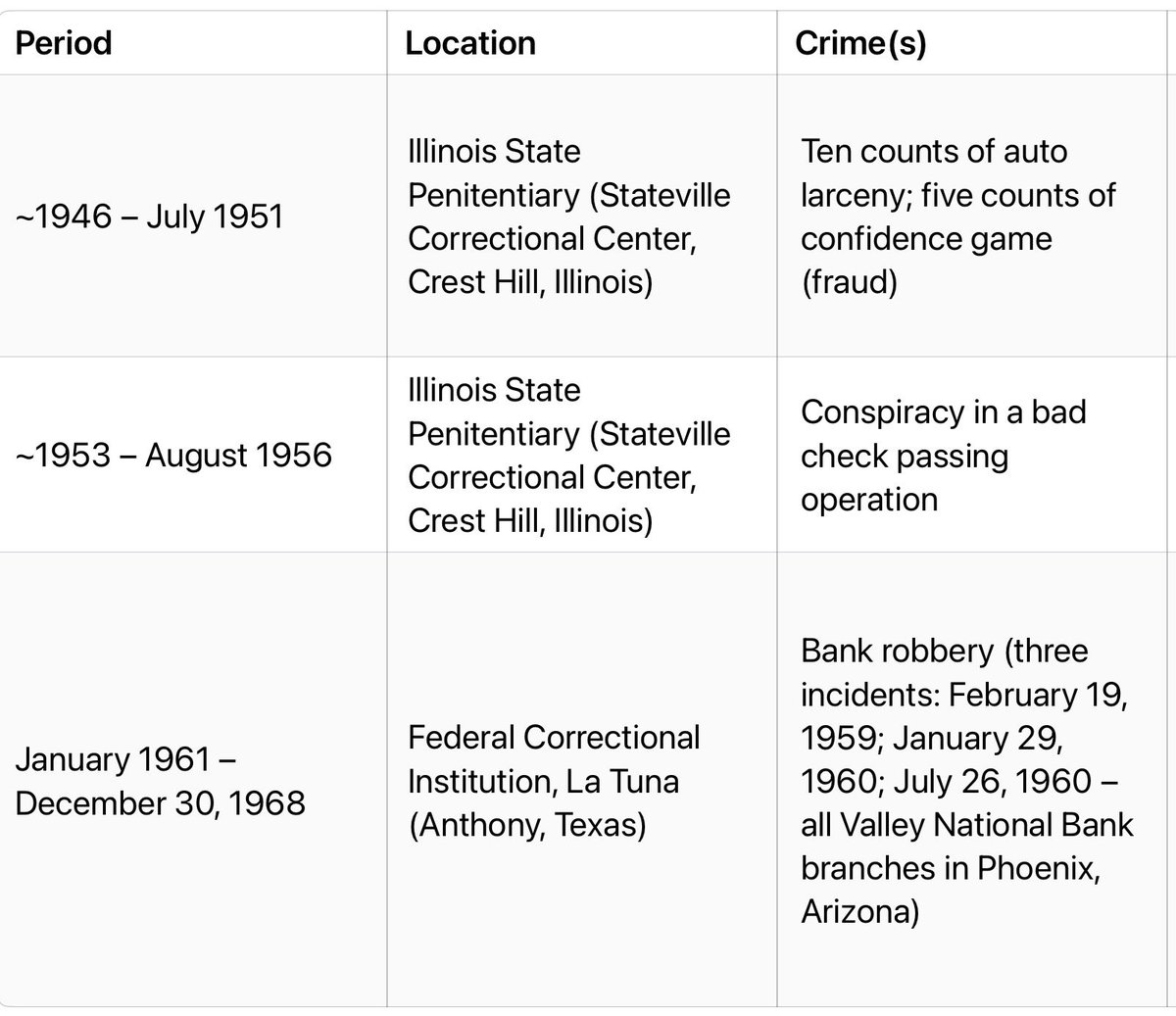 After his 1968 escape, he evaded capture until 1978 and was removed from the FBI's Ten Most Wanted list in 1977 without being recaptured at that time. Figure that one out. In 1987, he faced charges for racketeering and fraud in Oregon but avoided further prison time by paying a $100,000 (he just had lying around) fine.