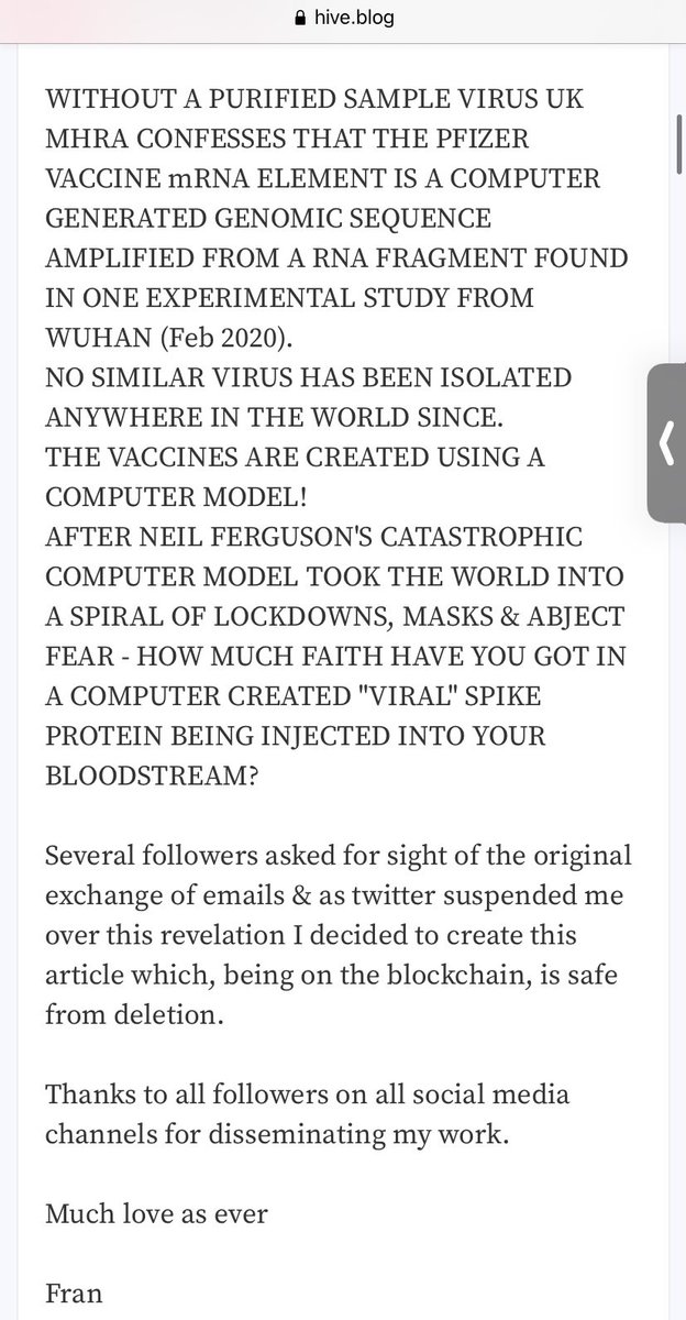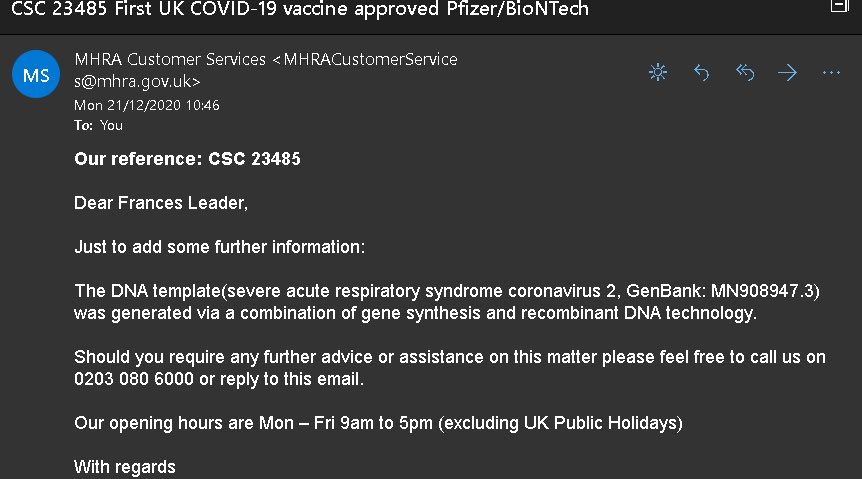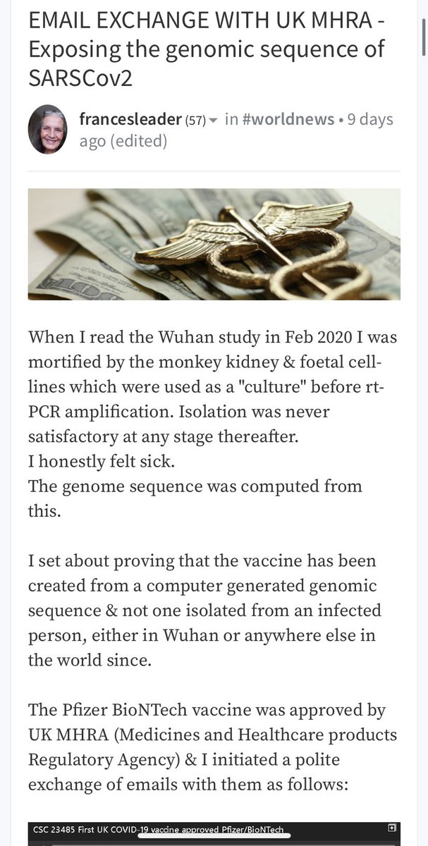 98. The UK's MHRA confesses that the Pfizer 'vaccine' mHRA element is a computer generated genome sequence. 👇👇 https://hive.blog/worldnews/@francesleader/email-exchange-with-uk-mhra-exposing-the-genomic-sequence-of-sarscov2