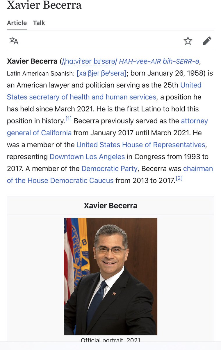 Who is Xavier Becerra? ✅ DEMOCRAT attorney ✅ Former ATTORNEY GENERAL OF CALIFORNIA (yep - no joke) ✅ Former Chair, House Democratic Caucus - under Pelosi ✅ Appointed by JoeBama to Secretary of Health and Human Services ✅ Worked for the CA Dept of Justice These are the people Democrats are swearing into office, as fast they can. Now do you know why Communist @RepJayapal - who transitioned her own child and who backs Democrat Ed Murray - who is accused of S3x crimes against children, said there are no trafficked children?