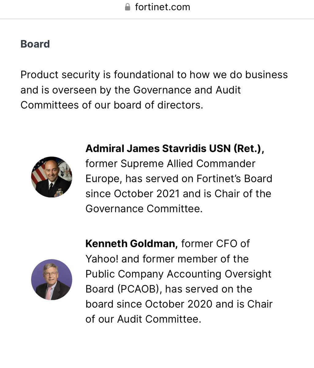 Leadership at FORTINET: 🚩WEF Board Member Ken Xie. Who founded Fortinet? 🚩Admiral James Stavridis 🚩KENNETH GOLDMAN (Yahoo) FORTINET’s Strategic Advisory Team includes CIA’s Suzanne Spaulding: DHS, CISA. Spaulding is part of “Defending Democratic Institutions” at CSIS… Recall that @DecentBackup covered Spaulding/CSIS in great detail. (And if you already covered LevelBlue & Fortinet - forgive me! 😂) Considering FORTINET’s partners include 🚩CROWDSTRIKE 🚩Ericcson …and advisors/staff are 🚩CIA 🚩WEF 🚩DHS 🚩CISA 🚩connected to Far Left extremist funding, organizations, and lobbyists who foster their ESG agenda and faux climate change money grab- Is there any wonder why Elections are not free, fair, or transparent? “Cybersecurity”. 🤦🏼♀️ One wicked global web. https://www.fortinet.com/corporate/about-us/strategic-advisory-council