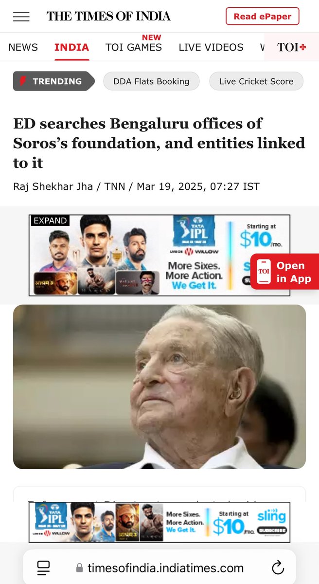 “Enforcement Directorate conducted raids on George Soros's Open Society Foundations for allegedly violating Foreign Exchange Management Act. Investigations revealed that funds were routed to Indian companies through suspicious arrangements, bypassing legal provisions to support NGOs. The action aligns with the controversy Soros faces in the US after opposing Donald Trump.” 💥19 March 2025💥