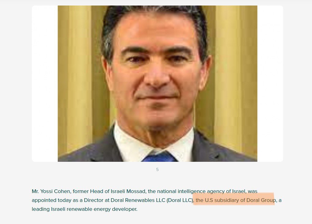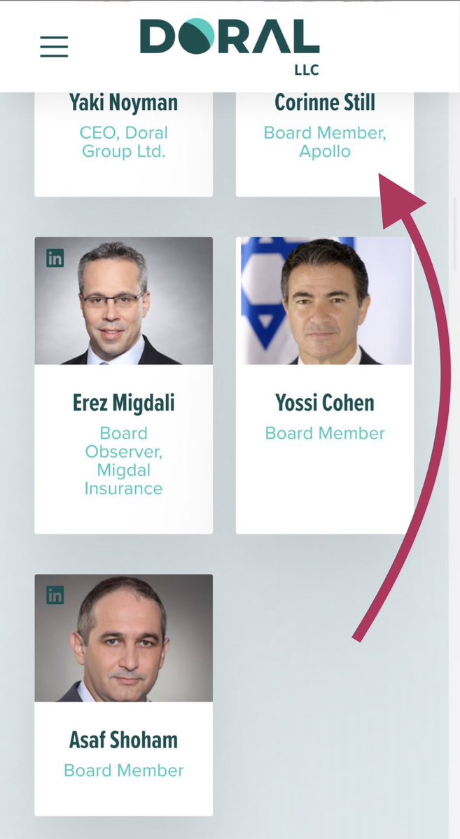 So the former head of Mossad, Yossi Cohen, now works at Doral Renewables LLC, alongside APOLLO’s Corinne Still? Got it. 👀 Thank you, @Bithiah333