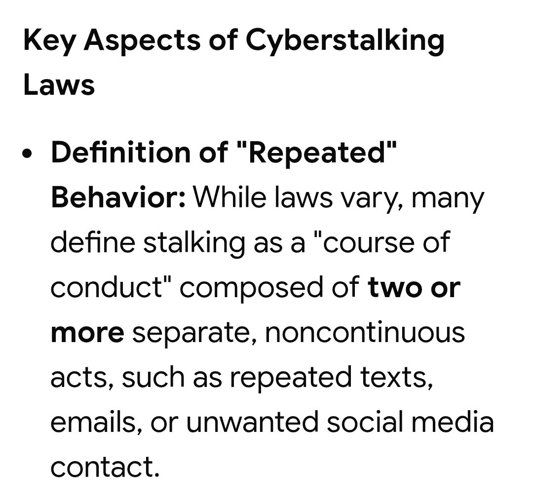 @lcagle63 @TrueNorth444 @posobitch @saucelordjay @Theonlyme333 @MikeHoncho @DSauce @Redmrd1 @Krypt707 @merissahansen17 > The 5 elements required for cyberstalking charges https://share.google/31W45Y0bPJbiNEEqZ