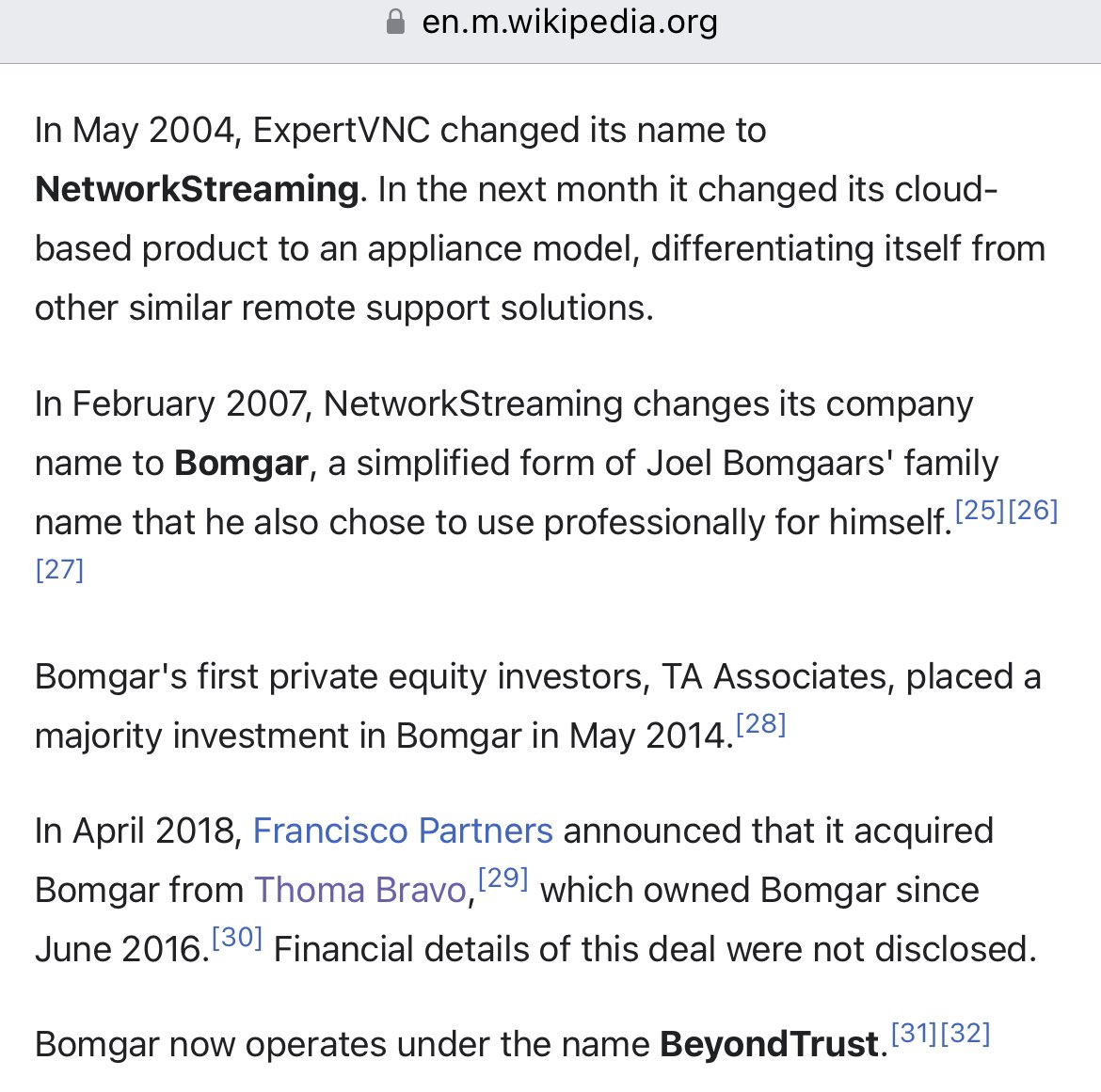 @KKR_Co My God. And wait - THERE’S MORE!!! Remote access breaches connected to MSFT and once again - THOMA BRAVO and FRANCISCO PARTNERS. Our Elections are completely fubarred. And @CISAgov knows it. 👇🏻 https://en.m.wikipedia.org/wiki/BeyondTrust