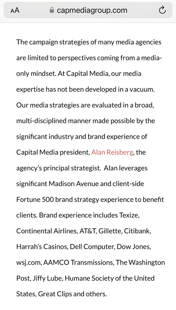 You know what’s especially disturbing? A “writer” who publicly stated she works for Capital Media - a DC based outfit where the founder worked for DELL and who caters to ATT (both are deeply entrenched and named in election fraud breaches via Ericsson and tech) worked/works for several high profile people in this movement, including @IvanRaiklin - This same person defended a wealth management company, Merriman Wealth Management which is Focus Financial/KKR/CDR (outlined in my pinned tweet) who laundered money for this Clinton Foundation Hedge Fund manager and Obama’s campaign bundler, BOK Financial. This is really disturbing. This same “journalist” was recently reported to police for Doxxing, stalking, and harassment. She apparently has inside Intel on her victims which now encompasses four states. She was told to stop speaking for @GenFlynn by @JosephJFlynn1 @MaryFlynnONeil1 Here’s detail on Capital Media - her employer: https://www.capmediagroup.com/about/ And the founder. Notice anything? https://www.linkedin.com/in/alan-reisberg-6452522/