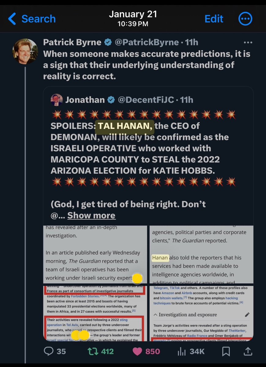 Tal Hanan, an Israeli operative who goes by Jorge, brags about how he successfully worked behind the scenes for $500k-$600k per month, to successfully steal elections at the Presidential level 27 times.