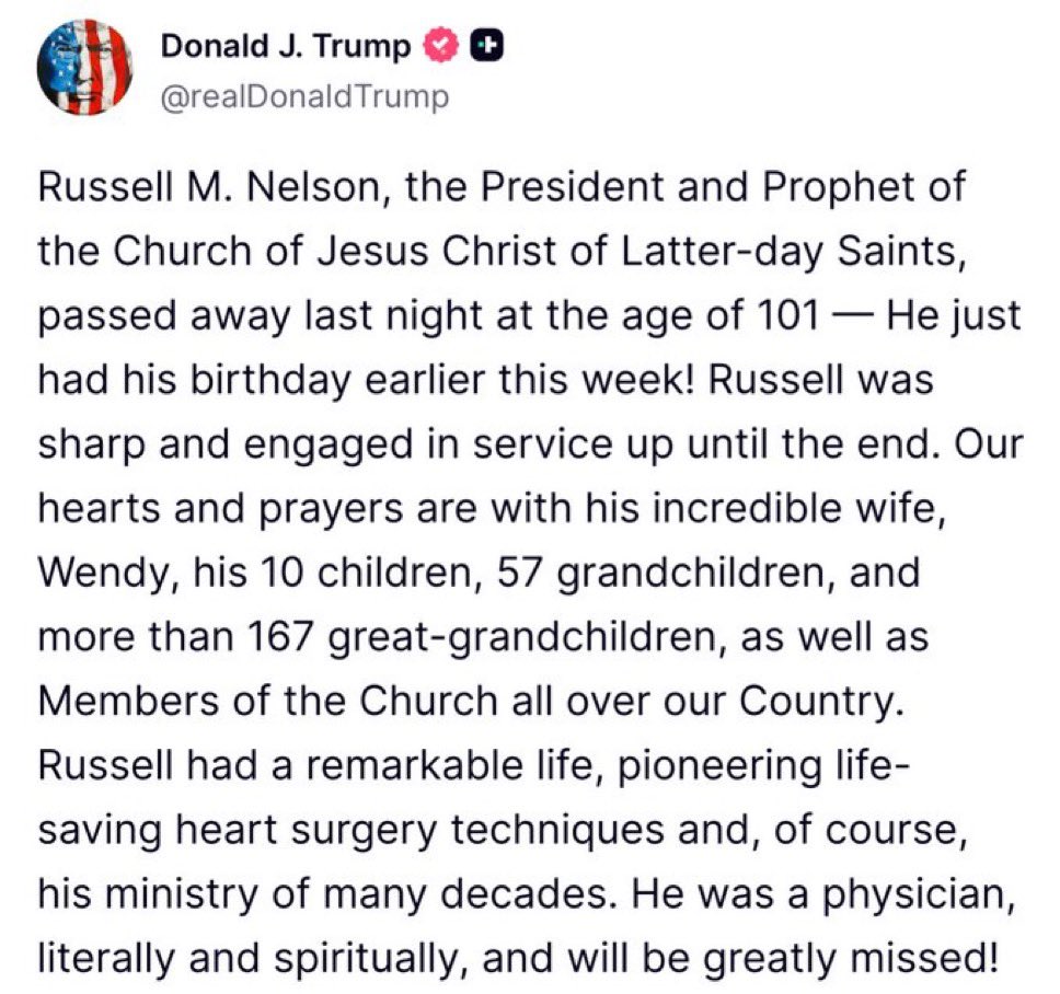 Elder Dallin H. Oaks, former First Counselor in the First Presidency, is set to be the next Prophet. https://www.abc4.com/news/religion/president-lds-church-russell-m-nelson-dies/