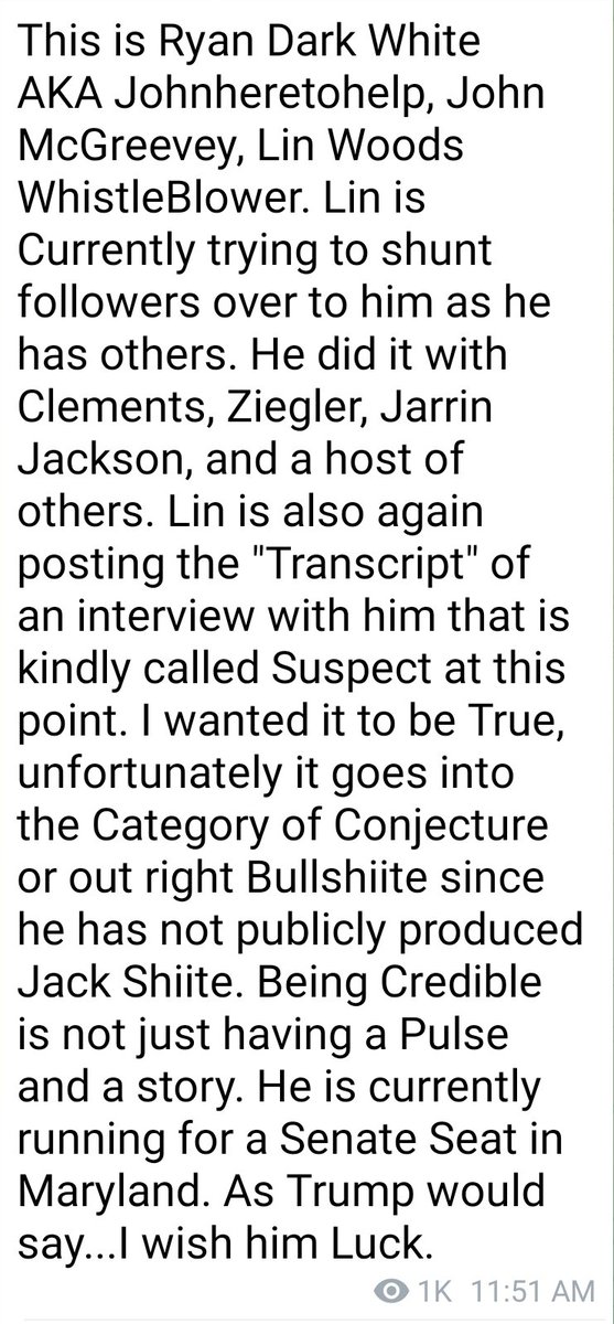 @GenFlynn @ChuckGrassley @JamesOKeefeIII @LLinWood @GarrettZxcvi @SteveWitkoff @EliCrane_CEO @realErikDPrince @dbongino @Kash_Patel Now, this is interesting. Ryan Dark W H I T E... is a Classic IIA Operation now. He has been "used". None of his information has been used to Publicly incriminate or Indict anyone successfully, except for Shawn Bridges. 👀 Cont....
